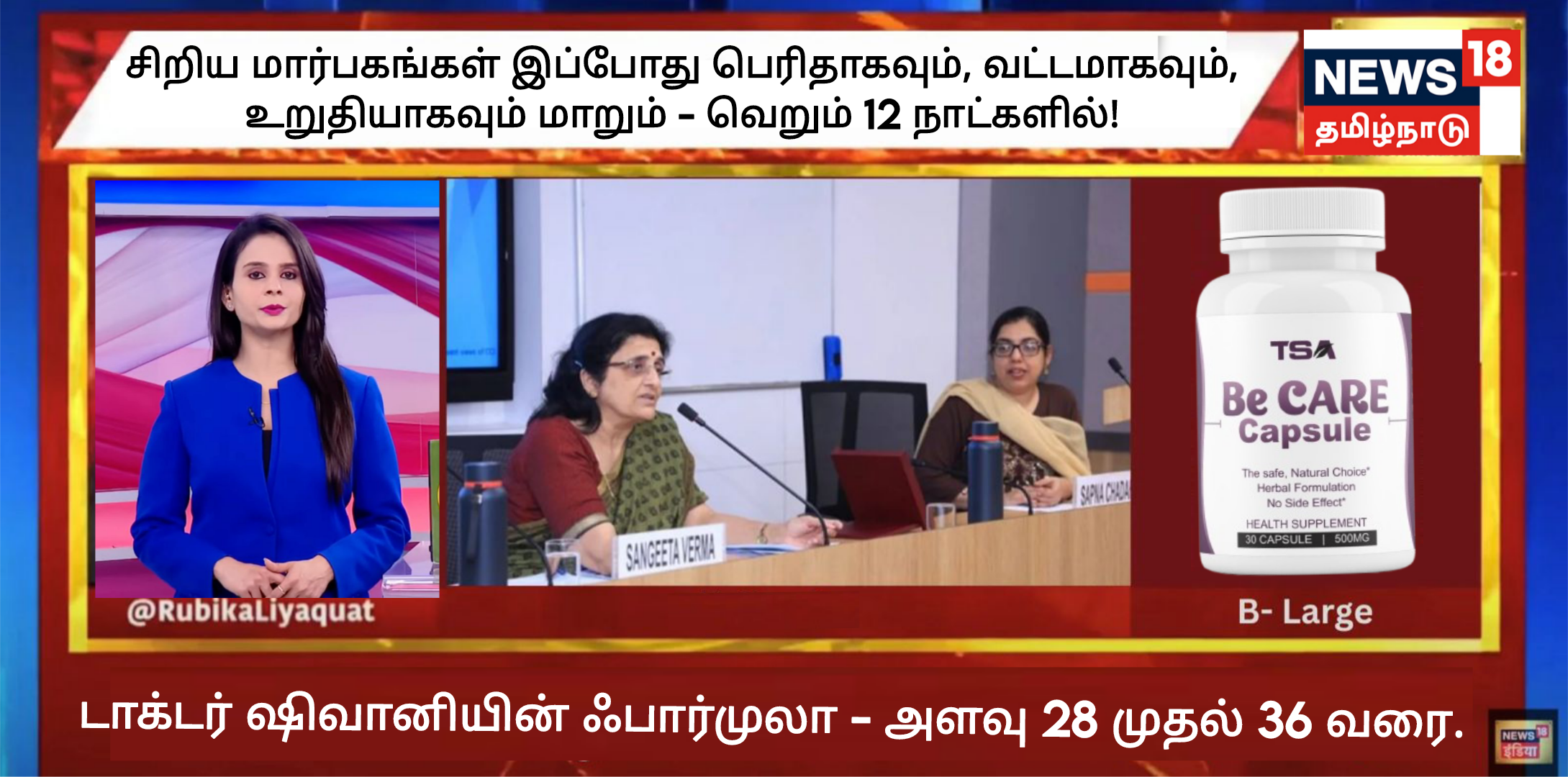 கடந்த மாதம் நான் Be-Care Capsules ஆர்டர் செய்து வைத்தேன்… உண்மையை சொன்னா வெறும் 13 நாட்களிலேயே எனது சைஸ் 36 ஆகிவிட்டது. இப்போது என் மார்புகள் பெரியதா மட்டுமில்லை, மிகவும் வளையாகவும் tight-ஆவும் இருக்கிறது.